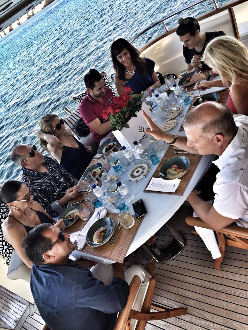 Debuting at the exclusive 2-night #OceanBlueExperience aboard the Ocean Blue branded yacht, the production team captured this exceptional journey on the seas, drawing the spotlight to the custom-made experience being enjoyed by both clients and guests alike. Luxury brands included Carolina Herrera and Salvatore Ferragamo, both exhibiting their superior collector items courtesy of Luxury Avenue. Tequila Clase Azul provided an excellent tequila tasting experience and Chef Alex Branch from Herringbone at Vidanta Los Cabos passionately presented his exquisite gourmet cuisine, all of which took place aboard the one-of-a-kind luxury vessel part of the fleet from Otaduy Yachts.