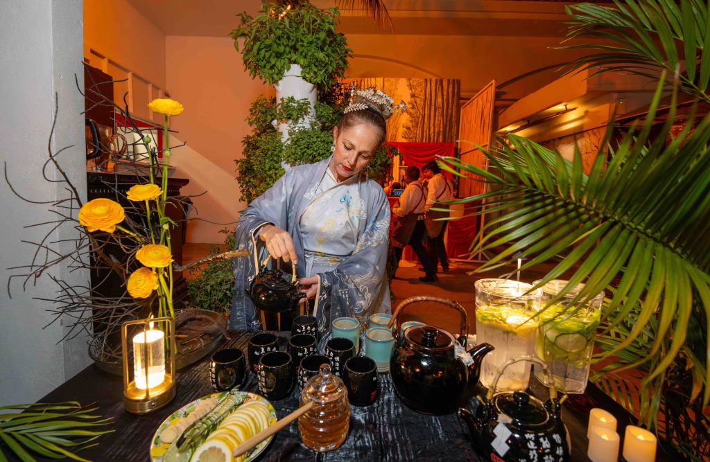 A bespoke “Dragon’s Menu,” masterfully presented by Chin’s, featured a multi-course menu inspired by Lee’s personal tastes, including Tung-style cabbage soup, Garlic Shrimp, and Beef in Oyster Sauce. Each course was paired with a thoughtfully composed soundtrack tracing Lee’s journey — beginning with the 1950s Cha-Cha rhythms of Hong Kong and evolving into the elegance of Sinatra and Bennett in Hollywood.